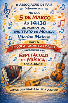 A Associação de Pais contactou o Instituto Matono e, em articulação com a escola, organizou um Mini Concerto destinado aos alunos do 1.º ciclo.